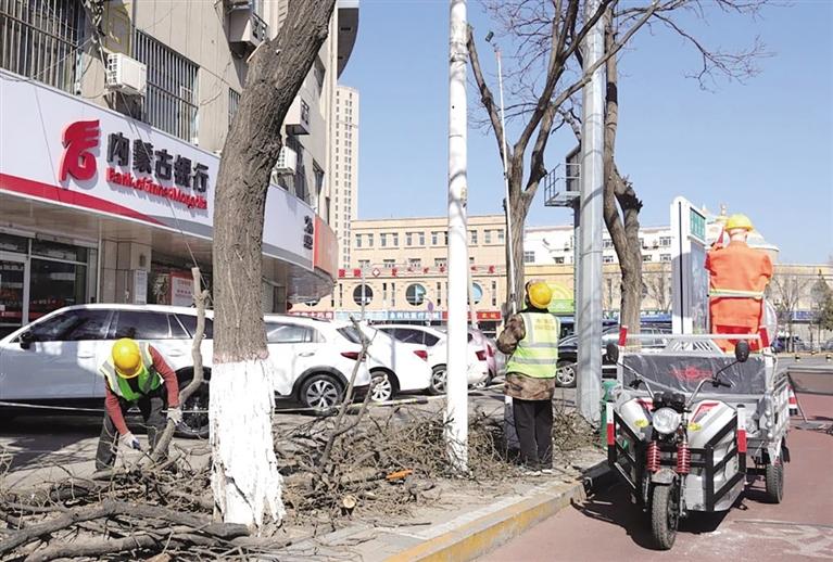 本报讯(记者 祁晓燕)为进一步提升城市绿化景观效果,给辖区居民创造更加优美舒适的出行环境,近日,回民区园林建设服务中心对呼武公路和通道街道路两侧绿植开展浇水、修剪等养护作业。