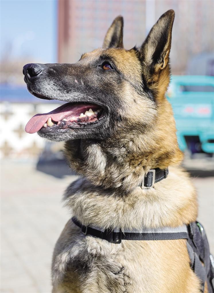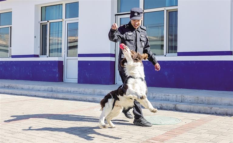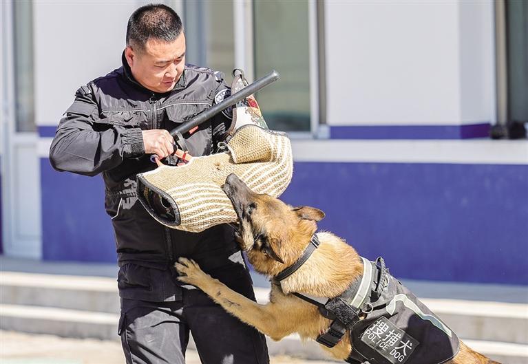 清晨的训练场上,训导员的口令声铿锵有力,警犬们精神抖擞开始了每日的“必修课”。“坐!”“立!”“搜!”……在训导员的指令下,警犬仅用3秒便轻松精准锁定了藏有模拟物的目标。训导员轻拍它的脖颈,警犬兴奋地摇起了尾巴。训导员告诉记者:“它们是我们的战友,更是家人。每条警犬每天都要进行高强度的训练,但每次完成任务后,它们的眼神比我们还骄傲。”
