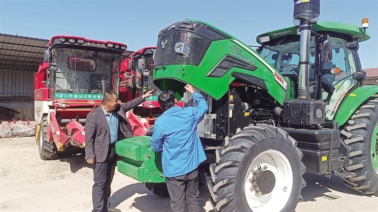 在和林格尔县一家农机经销店,大大小小的农机整齐停放,大型拖拉机、液压翻转犁、旋耕机等多种农机设备一应俱全。销售人员正耐心地为农户介绍农机产品的操作方法、油耗、安全性能、日常维护、售后服务以及补贴政策等。