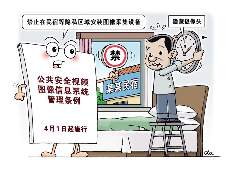 《公共安全视频图像信息系统管理条例》4月1日起施行。条例明确,禁止在民宿、宿舍、更衣室等能够拍摄、窥视、窃听他人隐私的区域、部位安装图像采集设备设施。对违法安装图像采集设备设施,或者非法对外提供、公开传播视频图像信息的,没收设备设施、删除视频图像信息、给予罚款处罚;偷窥、偷拍、窃听他人隐私的,依法给予治安管理处罚。