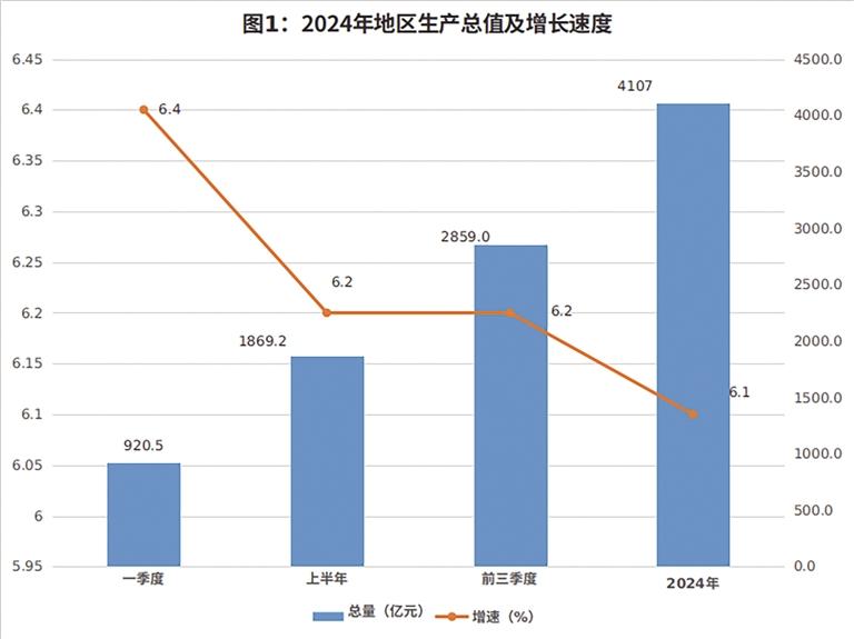 初步核算,全年地区生产总值完成4107.08亿元,按不变价计算,比上年增长6.1%。其中,第一产业增加值173.34亿元,增长5.1%;第二产业增加值1284.25亿元,增长5.2%;第三产业增加值2649.49亿元,增长6.6%。三次产业比例为4.2∶31.3∶64.5。第一、二、三产业对生产总值增长的贡献率分别为3.6%、25.4%和71.0%。人均生产总值达到113400元,比上年增长4.7%。