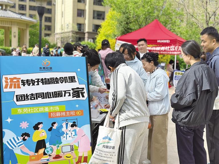 “我们提前做了大量的准备工作:对报名参与的摊位进行统一规划,精心划分区域、仔细编号,确保市集的整洁与秩序;安排专人维持现场秩序,保障活动顺利进行;还特别设置了抽奖环节,为活动增添了趣味性。”东苑社区书记王琪说,跳蚤市场不仅为居民提供了闲置物品交换的平台,更通过实践倡导环保理念,让旧物找到新主人,既减少浪费,又能增进邻里感情,让社区更有温度。