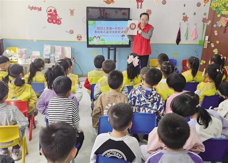 为进一步加强校园安全宣传教育,增强未成年人法治安全意识,预防交通事故发生,近日,新华西路街道医学院社区关工委走进辖区幼儿园,开展“扣好人生第一粒扣子”未成年人安全教育活动。