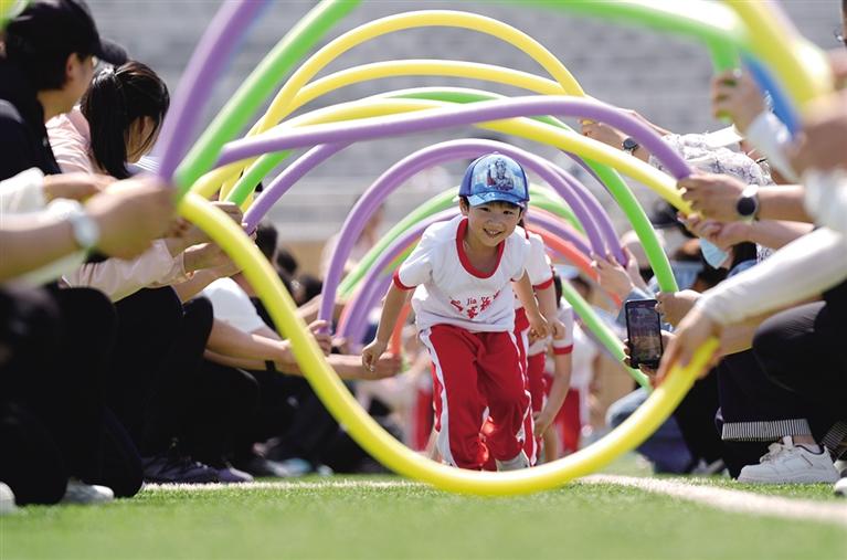 5月27日,家长与孩子们在活动中参与亲子游戏。