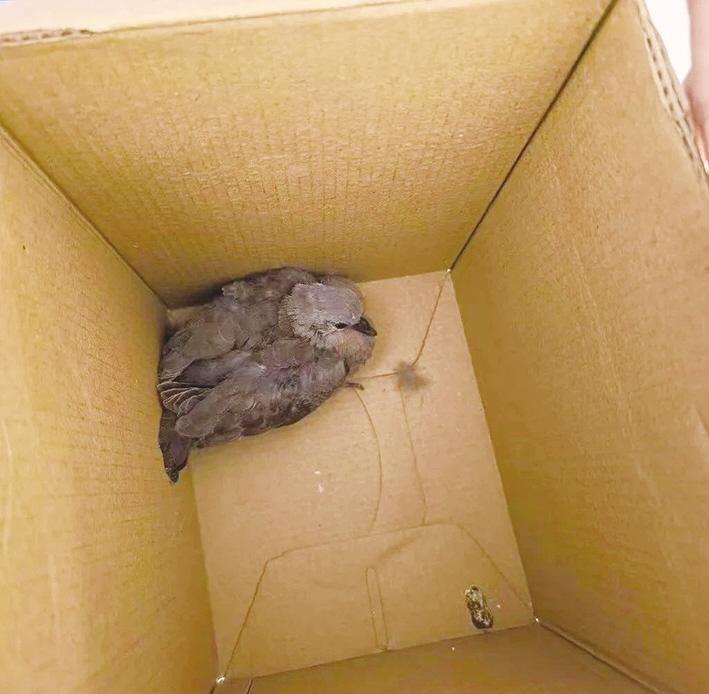 5月23日午后,回民区公安分局中山西路派出所的报警电话响起,市民称在路边草丛中发现一只无法飞行的野生小鸟。民警抵达现场时,只见一只灰色幼鸟蜷缩在居民临时找来的纸箱里,大眼珠警惕地转动着,被雨水浸透的羽毛紧贴身体,在微凉的空气中不住颤抖。报警人回忆,这只小鸟当时拼命扑棱翅膀却无法飞起,他便用纸箱临时安置后紧急报警。