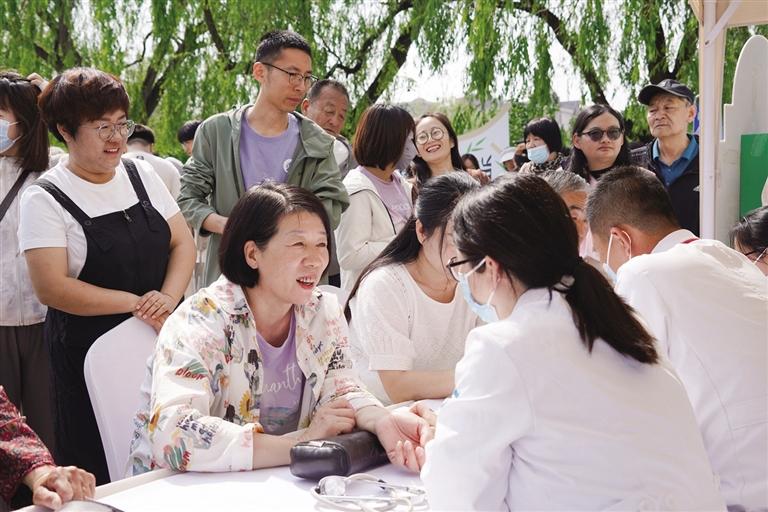 活动现场除了精彩的文艺表演,还设置了多项端午民俗文化体验活动。在“粽香四溢”青城包粽子区域,众人围在一起,捋粽叶、填糯米、放馅料、扎捆,不一会儿,各式各样的粽子摆满了桌子,大家在欢声笑语中感受端午传统习俗的乐趣;“兰舟渡云上·彩绳系安康”编五彩绳,“菖蒲悬门·香囊寄情”做香包、挂艾草等活动,让市民亲身体验端午民俗的魅力,感受传统节日的美好寓意;“端午粽香传古韵,中医问诊护身心”中医科普问诊活动则结合端午时节特点,为市民提供夏季养生知识科普和健康咨询,在民俗雅韵中探寻千年养生智慧。