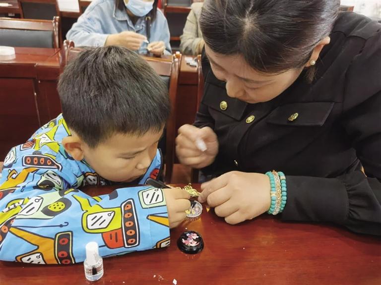 本报讯(记者 阿柔娜)近日,玉泉区长和廊街道大召社区新时代文明实践站联合玉泉区领益社会组织服务中心共同举办“指尖拾贝 古韵传新”非遗亲子螺钿手工制作活动。此次活动通过寓教于乐的形式,将非遗技艺融入亲子互动,让传统文化在协作中焕发新活力。