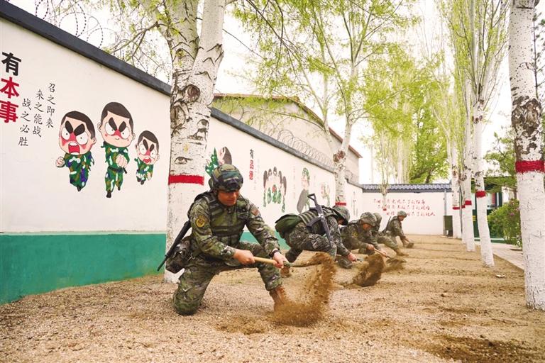 战斗文化上墙,让训练激情“融”入血脉。武警呼和浩特支队勤训长廊墙绘中融入了军事训练技巧、勤务组织方法,训练场墙面上绘制了战术搜索和潜伏狙击画面,营造出“尚武精武”的浓厚氛围,激励官兵在训练场上奋勇争先,敢于叫响“夺红旗、争第一”的口号。