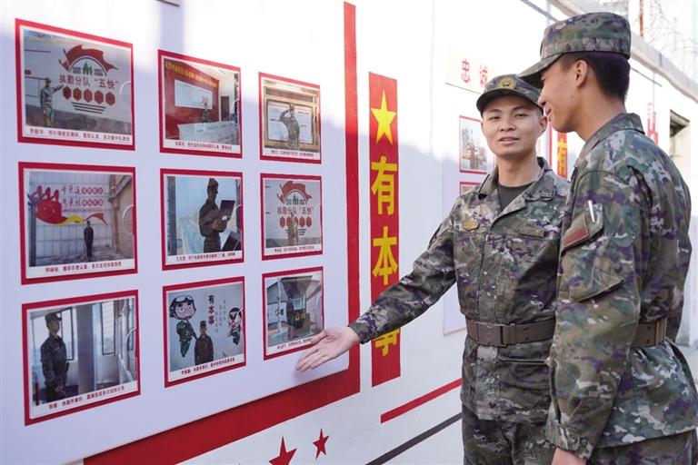 哨位文化上墙,让戍卫重任“担”在肩上。以上勤通道、哨楼内外为载体,通过组勤流程、职责规范和警示标语构建起哨位文化,配合定期更新的执勤剪影,让静态墙面成为浸润式教育阵地,在耳濡目染中不断激励官兵牢记职责,崇尚荣誉,在集体和个人的交融中增强责任感。