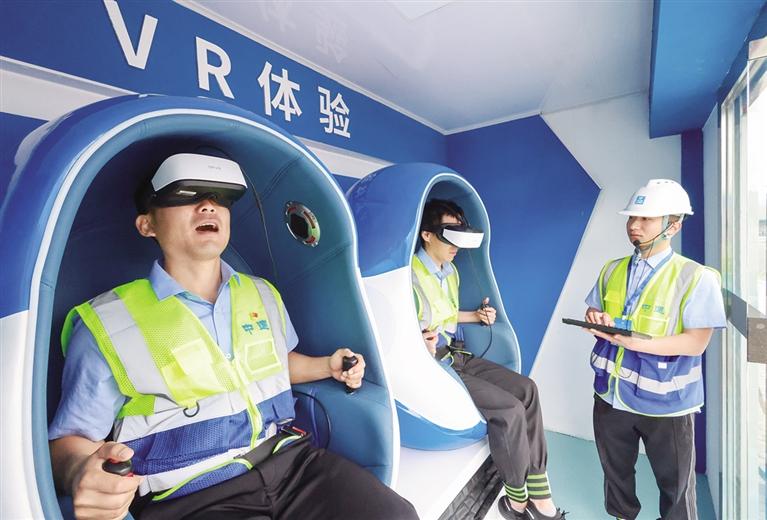 6月16日,由住建部主办,内蒙古自治区住建厅、中建集团承办,呼和浩特市政府、中建三局协办的2025年全国住房和城乡建设领域“安全宣传咨询日”主会场活动,在中建三局承建的华北地区(呼和浩特)空中交通管制能力提升基础设施建设工程项目举行。活动中设置了内蒙古自治区创新成果、智慧工地、智能装备、绿色建造展示区等,通过线上线下多种形式集中宣传安全生产红线意识、法律法规及安全常识,提升公众安全意识和避险逃生能力。图为施工人员通过VR体验不同施工下的危险情况,增强安全意识。