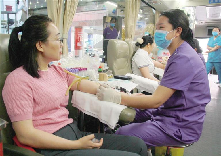 日前,由回民区归国华侨联合会、中山西路街道办事处主办,回民区民族事务委员会承办的2025年民族政策宣传暨无偿献血公益活动在内蒙古民族商场举行。图为献血现场。