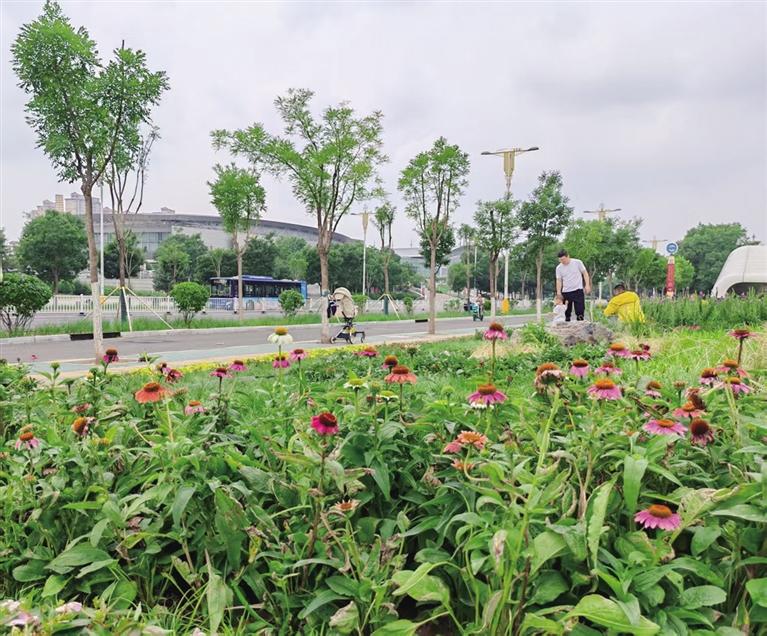 目前,所有花境作品均已完工,带状花园点缀道路两侧,让成吉思汗大街成为名副其实的花园大道。