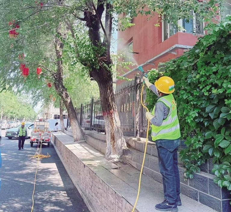 近日,新城区园林绿化服务中心组织养护服务单位开展了榆树虫害专项防治行动,全力防控榆绿毛萤叶甲虫害的发生。