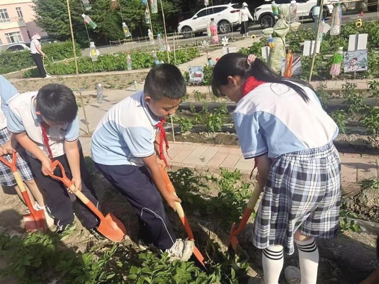 在劳动基地,五年级学生李桐正踮着脚摘豆角,“原来蔬菜成熟要经历这么多步骤!”她擦了擦额头的汗水,告诉记者,“蔬菜没成熟前我觉得每天照顾菜苗太麻烦了,现在才知道,没有每天的浇水、除草,根本长不出这么好的菜。”
