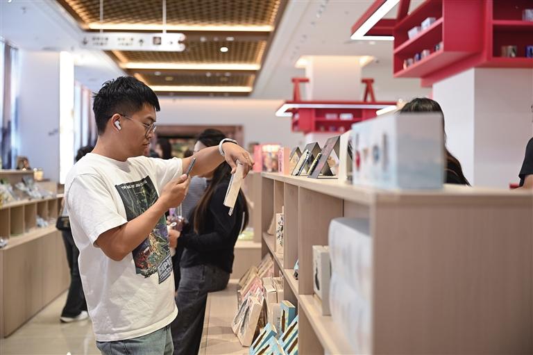 7月30日,游客在内蒙古呼和浩特市内蒙古博物院新馆选购文创产品。