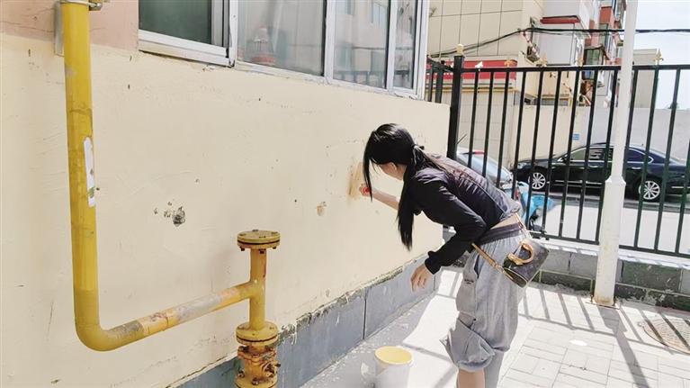 光华街社区属于老旧小区居多的社区,紧邻光华小学、呼和浩特市第十四中学等学校,辖区内有很多租住户。近些年,随着“小饭桌”的不断增加,很多小区的“小饭桌”缺乏管理,造成小区楼房墙体乱涂乱画、设施设备损坏现象比较严重。为了营造更加美观、整洁的居住环境,光华街社区网格员对电缆厂小区开展了楼房墙面粉刷和清理“牛皮癣”行动,为小区“刷新颜值”。