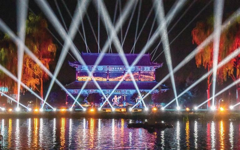 演员们在水上浮台翩然起舞,在变幻的光影与水幕间演绎昭君出塞的动人故事,来自广东的游客看得入了迷,“没想到历史故事能以这种方式呈现,太有感染力了。”