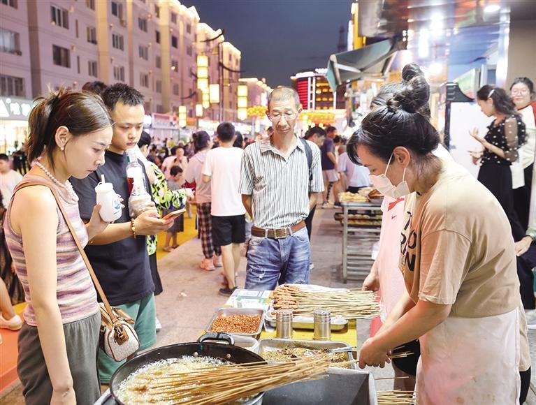 位于转角巷的集装箱餐吧里,店主赵先生正为客人端上冰镇果汁:“这段时间游客多,晚上10点仍座无虚席!”店主指着墙上闪烁的霓虹灯牌说,“年轻人就爱这样的风格,拍出来的照片格外出圈。”隔壁卖烤串的摊主老杨边扇着炭火边说:“你看这签子堆的,近来生意特别好。”