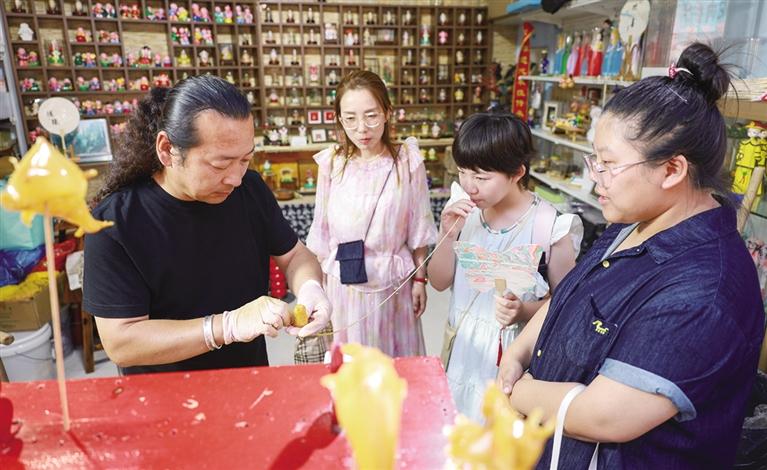 非物质文化遗产体验区同样人气高涨。糖画制作等非遗代表性传承人现场展示技艺,游客们或亲手尝试制作,或驻足观看,沉浸式感受传统文化魅力。