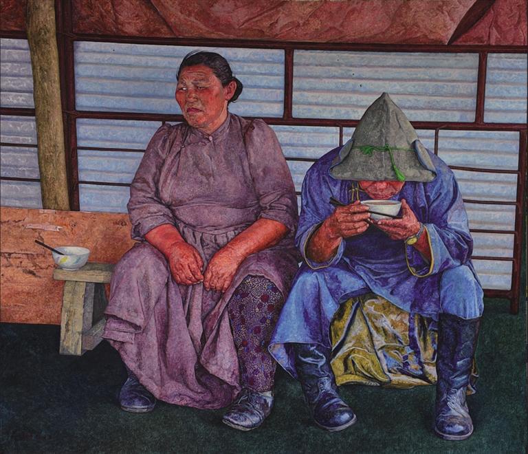 就当下内蒙古草原牧民的生活现状来看,在深层面上不断改变着,但那种植根于草原的民族精神依然活泼、昂扬。借此,为身处当下的草原儿女“造像”,并将时代印迹和民族承继的双重写照,运用油画语言表达出来,成为本人创作的基本方向。