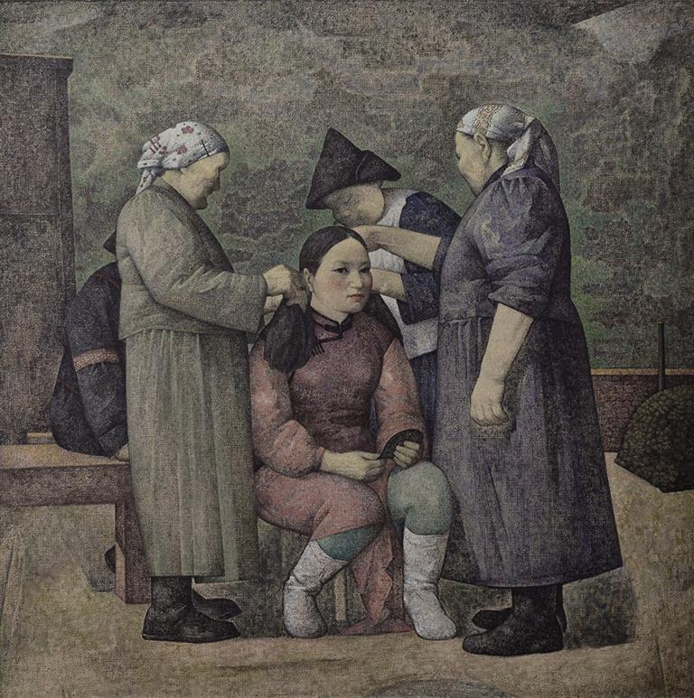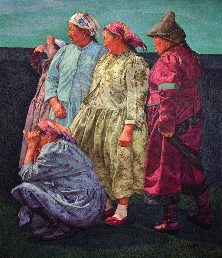 本人的北方草原题材油画系列创作。造型上,选择了写实性手法,并坚持外形冷峻的线性特质,排斥外形渐隐的图绘式画法,也放弃借由笔速而挥洒的写意性手法。色彩上,选择了装饰性效果的直接画法,坚持找回色相的本来面目,抑制法国印象派光色概念下的环境色干扰,试图通过不断限色和提高纯度,获得每一种色彩的自身表现力。形式上,为了达成具象造型与归纳色彩的平衡,画面二维性与三维性的平衡,具体形象与抽象形式的平衡,色彩感觉与色彩情感的平衡,不断尝试艺术表达和形式语言的统一。这些年来的油画创作实践,如作品《布里亚特的女人们》《布里亚特之晨》《今日草原》《守望草原》《苏力德大战沙暴》《神性》《人性》《额吉的嘱托》《新能源时代》《写脱贫喜报》《共筑绿色长城》等,就是不断试验,期望获得属于自己的艺术表达方式的过程体现。