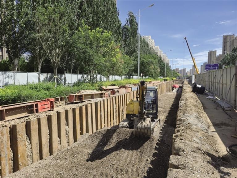 据现场施工小组负责人王海英介绍,辛家营区域机场南辅路一次管网工程是今年供热管网互联互通工程的一部分。该工程西起东二环快速路,东至哈拉更公园北门,管网直径200—1200毫米,沟槽长约2.17公里,供热面积约1000万平方米。项目建成后即可联通并改善内蒙古文联小区和玖和悦府小区用热质量,同时替换内蒙古文联小区、玖和悦府小区的两座燃气锅炉房,沿途新入网用户如地铁控制中心等多家单位,由原来的燃气锅炉房供热改为清洁热源,并为以后机场南辅路未开发区域清洁热源供热做好准备。王海英介绍,该工程7月21日正式开工,目前跨越哈拉更河段任务已完成,计划9月1日前完成全部管道敷设和回填任务。