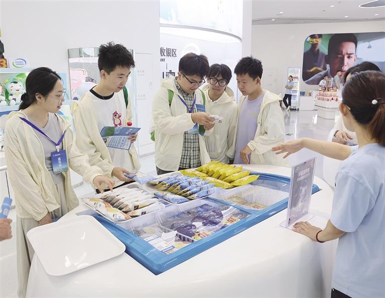 来自华东师范大学的武雅茹对这里的智能化设备赞不绝口:“今天看到了非常壮观的乳制品生产场景,最大的感受是智能化程度很高,整个生产流水线非常先进和高效,更新了我对于如何生产一瓶牛奶的认知。”