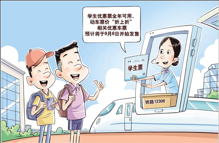记者8月15日从中国国家铁路集团有限公司获悉,铁路部门将优化学生旅客购票出行措施,推出学生优惠票全年可用、动车票价“折上折”,让学生购票出行更加灵活方便、得到更多实惠。相关优惠车票预计将于9月6日开始发售。