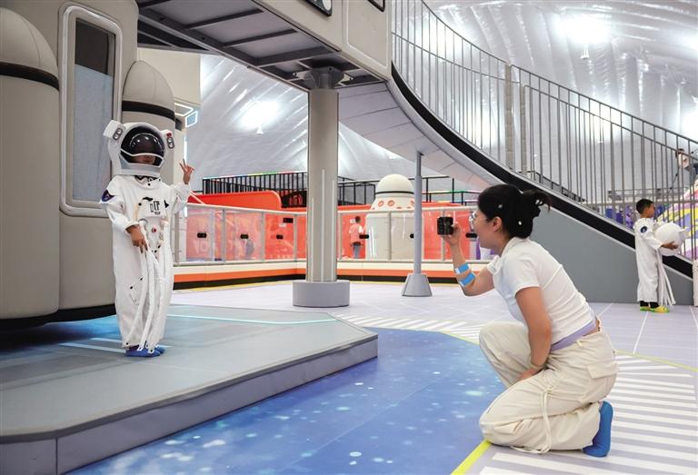 此次开放的“逐光原野运动乐园”,以6000平方米气膜穹顶构建未来感空间,创新融合海军、陆军、空军三大作战基地及总指挥部,实现从“看”到“玩”的体验跃升,场馆精心配置30余项创新游乐设施,为亲子家庭及青少年群体提供趣味运动项目,强健体魄,丰富假期生活。