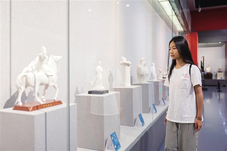 8月22日,由民盟中央美术院、民盟福建省委员会指导,福建省德化县陶瓷发展委员会支持,内蒙古美术馆、内蒙古民间文艺家协会、福建省民间文艺家协会、福建省海峡民间艺术馆、福建省陶瓷行业协会、福建省工艺美术学会主办的“瓷海扬帆——李甲栈师徒陶瓷艺术传承展”在内蒙古美术馆正式拉开帷幕。展览将持续至9月21日。此次展览共展出150多件(套)陶瓷艺术精品,涵盖了纯白瓷塑、捏塑花卉、精巧茶器、唐彩瓷塑、天目瓷等丰富品类。 ■本报记者 王劭凯 摄