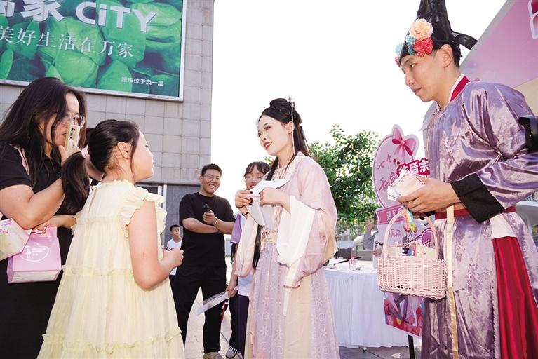 活动环节亮点纷呈,设置了传统习俗体验区,开展巧果品尝、投壶游戏、许愿树祈福等项目,并安排牛郎织女NPC互动,吸引了众多市民、游客共同感受中华优秀传统文化的浓浓韵味,共赴一场融合传统与浪漫的文化盛宴。