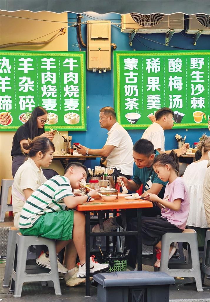 走进回民区宽巷子,升腾的烟火气扑面而来。烧卖蒸笼升腾起的白雾和羊杂碎锅里的咕嘟声交织,人们围坐小桌吃得热火朝天。