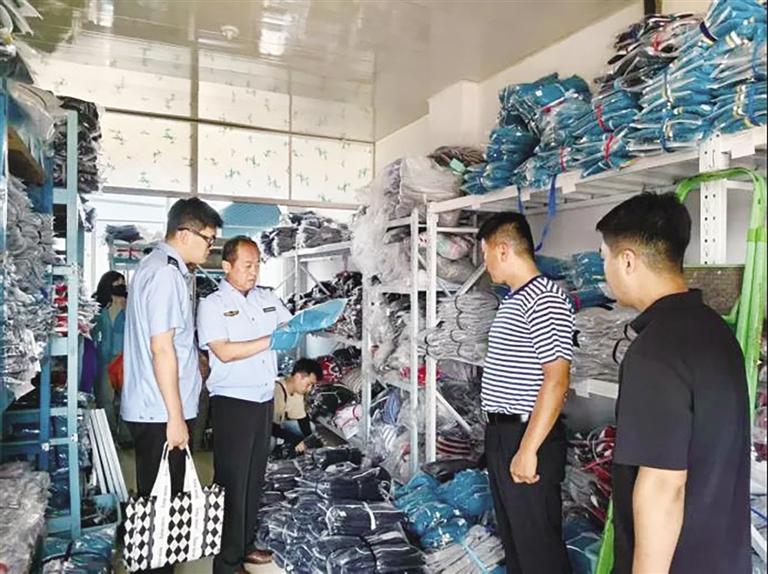 近日,土左旗市场监管局对辖区学生校服生产企业开展了校服质量安全监督抽检工作。执法人员通过现场问询、实地查验、监督抽检等方式,严防不合格校服进入校园,确保校服产品质量可靠、来源可溯。