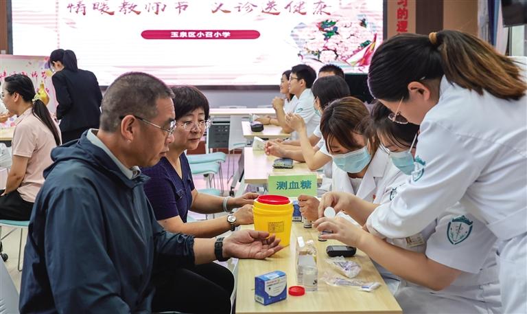 “老师您辛苦了,请坐这边我来帮您看一下。”在第41个教师节来临之际,为弘扬尊师重教传统,关爱教师身心健康,9月9日,呼和浩特市中医蒙医院的医护志愿者走进玉泉区小召小学开展“尊师重教 关爱健康”主题义诊活动。