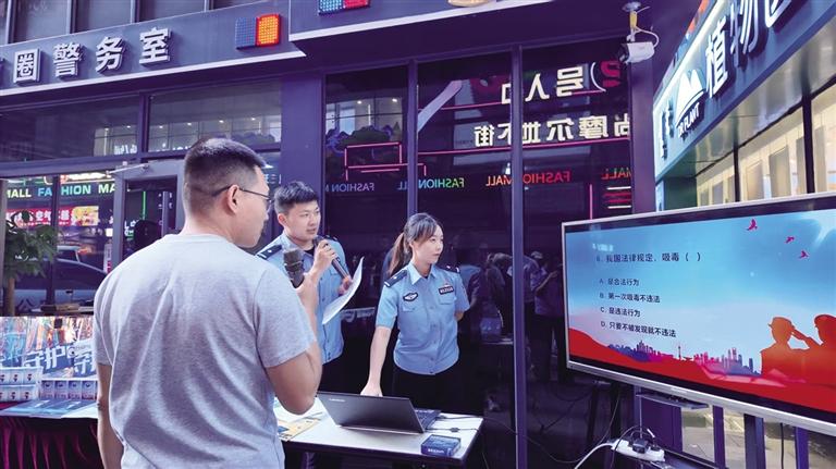 9月5日,海亮广场商圈警务室周边人头攒动,“反诈+禁毒”宣传活动火热进行。回民区公安分局中山西路派出所创新宣传形式,通过“沉浸式体验+互动式教学”的方式,让反诈和禁毒知识真正走进群众心里。