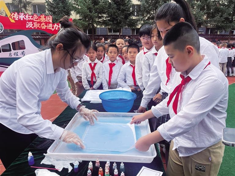 新华小学车站校区则将呼和浩特博物院“搬”进校园。博物院专家以将军衙署戍边历史、昭君出塞促进民族团结等故事为切入点,讲述了北疆文化的深厚底蕴。此外,学生们还体验了瓦当拓印、甲骨文临摹、香囊制作等活动。