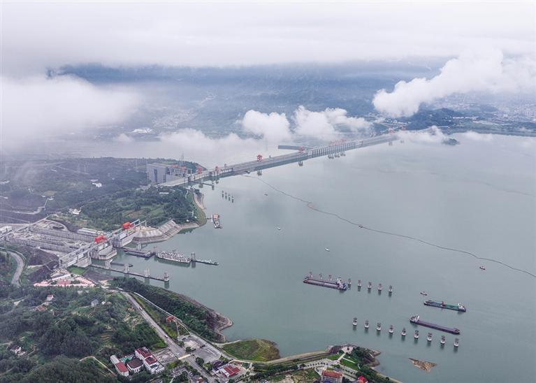 9月11日,在湖北省宜昌市拍摄的三峡水利枢纽工程(无人机照片)。