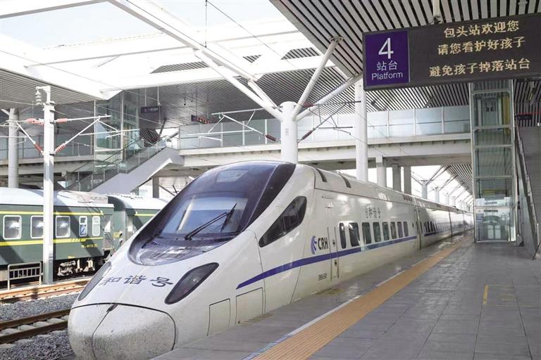 近日,随着加装检测设备的CRH5A型重联动车组缓缓驶回包头站,包银高铁包惠段顺利完成重联动车组试验。