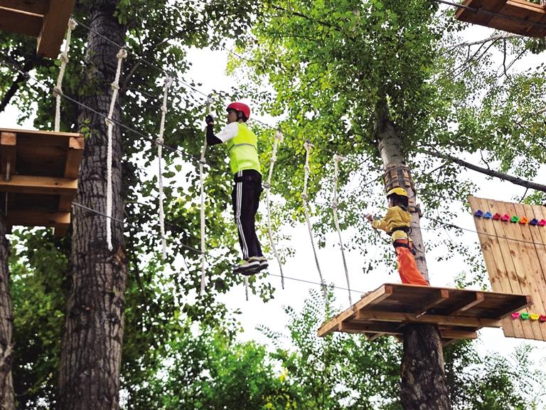 “呼和浩特市现有露营地30余家,但同质化较为严重。我们打造的树上冒险项目在青城是独一无二的。”赛罕农投嘉仕园中缘运营总监苏日娜告诉记者,园区利用成材多年的杨树林,设计了三条不同难度的线路:低空线路适合3—6岁幼儿,高空线路适合6—15岁学龄儿童,还有一条更具挑战性的线路适合12岁以上青少年和成人。