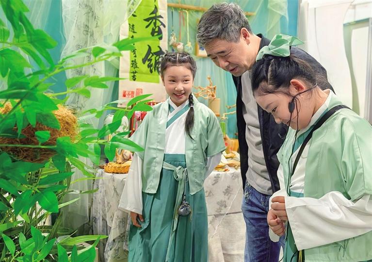 展览现场,呼伦南路小学展区以“本草丹青”为主题,将传统中医药文化与现代美育实践有机融合,打造出一个充满创意与温情的育人空间。