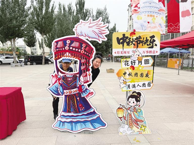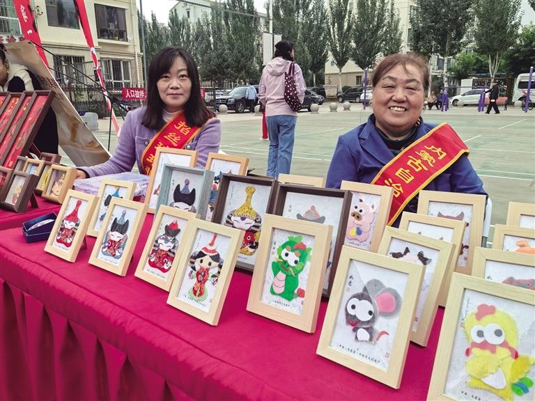 活动现场布置有民族团结和中秋节主题打卡背景墙,设置了“亲自动手做月饼,民族团结话团圆”环节以及丰富的文艺节目。同时,邀请掐丝珐琅非物质文化遗产代表性传承人刘家铭(左)和布贴画非物质文化遗产代表性传承人崔锁莲(右)等进行作品展示,让大家在欢乐祥和的氛围中感受民族团结的力量。
