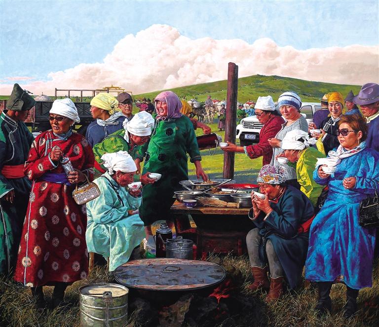 时代召唤我们要在传承中创新、在坚守中发展,内蒙古的美术在长期发展中形成了鲜明而独特的民族性。考量一件艺术作品绝不能仅看它所反映的生活内容是否具有民族特征,还在于是否发掘出强大的外延力和深刻的精神内涵,能否准确深入地阐释文化精髓、表达民族精神,这是艺术民族性的核心和灵魂。