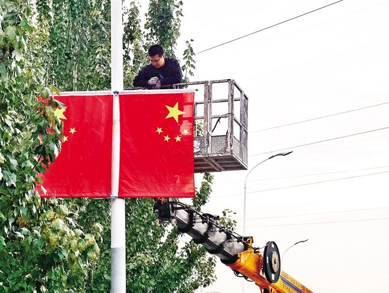 随着国庆节日益临近,呼和浩特的街头巷尾已悄然换上“盛装”。为让市民在浓厚的喜庆氛围中迎接国庆佳节,赛罕区城管部门提前一周便启动部署,从国旗尺寸规格、悬挂高度间距,到安装点位安全性,每一项细节都反复敲定,力求以最规范、最美观的方式为城市披上“中国红”。行走在鄂尔多斯大街上,鲜艳的五星红旗沿着道路两侧的灯杆整齐排列,随风舒展的旗帜与川流不息的车辆、郁郁葱葱的行道树相映生辉;万达步行街商圈内,商户们主动配合,将国旗悬挂在门店入口显眼位置,红色旗帜与亮眼的节日促销海报相互映衬,既添了节味,更暖了人心……
