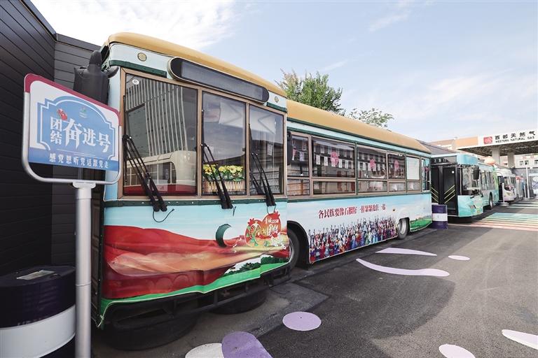 “‘团结奋进号’公交专线是我们与市民委联合打造的,专线以‘红石榴’为视觉符号,寓意‘各民族要像石榴籽一样紧紧抱在一起’,并结合二十四节气元素,展现中华传统文化的精神内涵。”市公交公司讲解员马晓倩介绍。