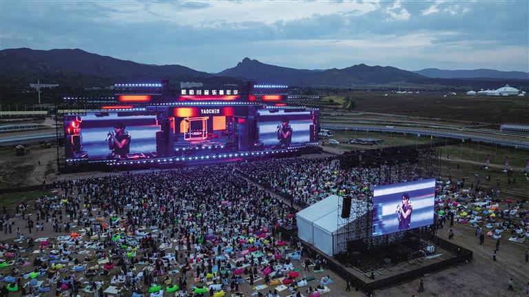 演出阵容强大、风格多元,满足不同歌迷的喜好。新生代歌手王琳凯、黄子弘凡、刘宇、姚琛活力登场,用劲歌热舞点燃现场。“看到刘宇在草原上跳舞,他的舞蹈太有感染力了!”来自上海的 00 后歌迷小苏高举应援牌欢呼。当马頔《南山南》的旋律响起,现场万人齐唱,来自广州的歌迷张先生眼眶泛红:“在草原上和这么多人一起合唱这首民谣,这种感动这辈子都忘不了。”