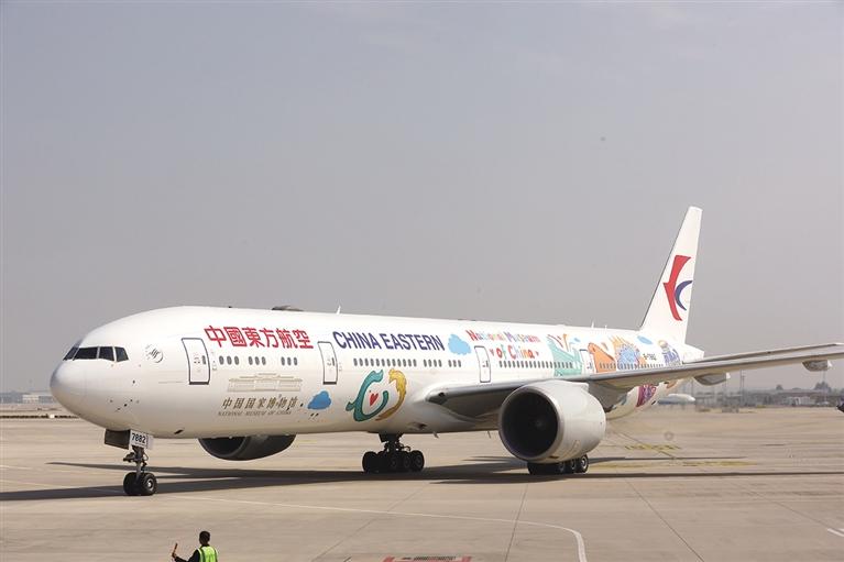中国国家博物馆与中国东方航空联合推出的“国博号”主题彩绘飞机将于9月29日在北京大兴机场首航,飞往上海浦东,并以此为起点,逐步投入国内、欧美澳等重点航线及“一带一路”国际航线,架起文化传播的“空中桥梁”。