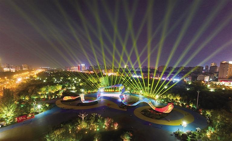 国庆、中秋“双节”期间,呼和浩特市赛罕区丝绸之路现代文化公园推出特色文旅活动。10月1日至8日每晚,吉祥哈达广场、问道广场两大主题光影秀同步开启,以科技与文化融合的璀璨画面为祖国庆生,为市民、游客送上视觉盛宴。?