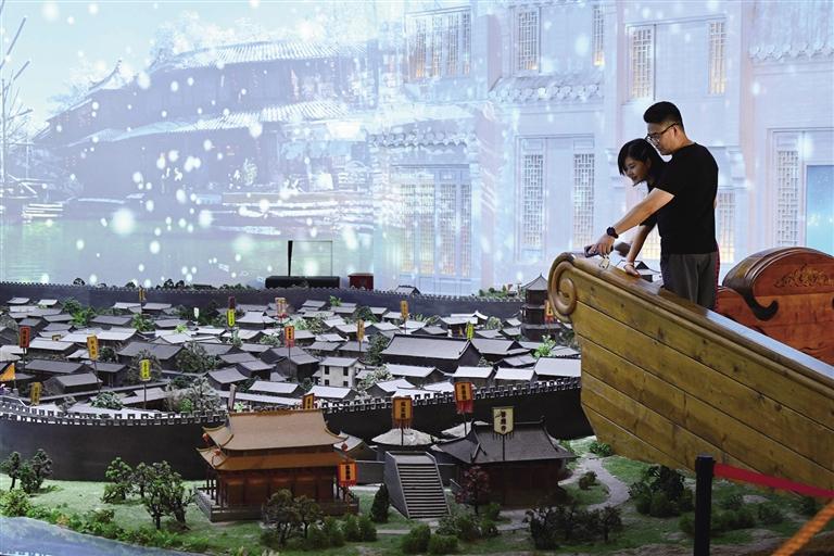 10月4日,游客在江苏省淮安市大运河国家文化公园记忆馆参观。