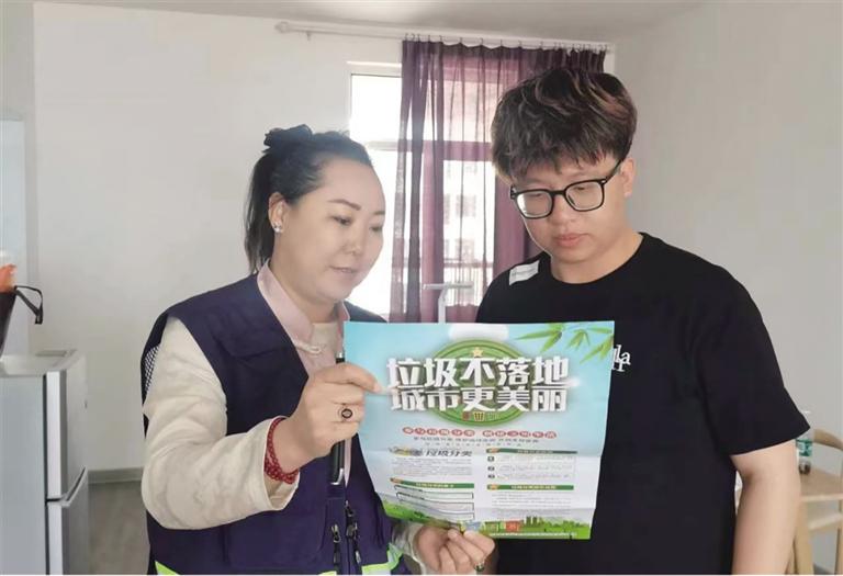 近日,海西路办事处赛马场北路社区开展了垃圾分类入户宣传活动。
