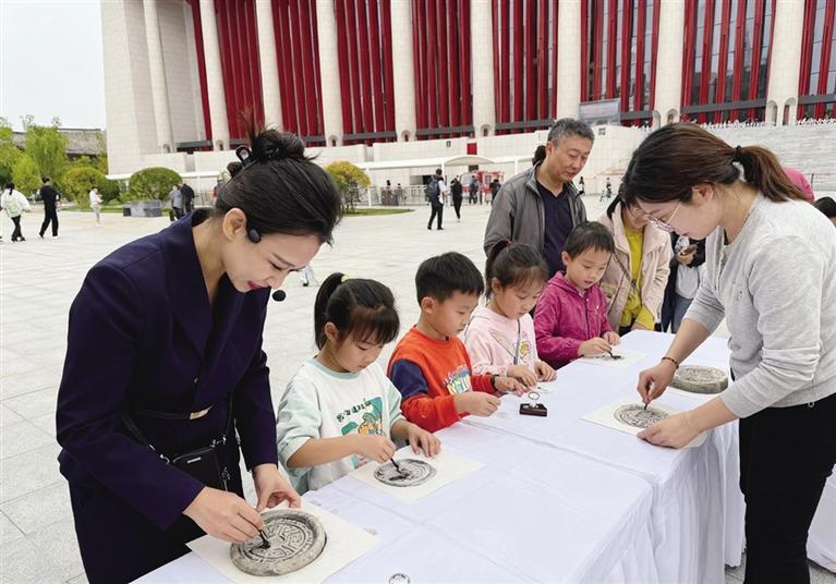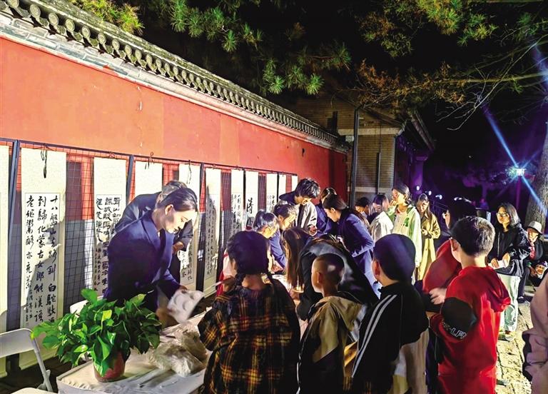 “绘月题诗寄情”环节则展现了市民、游客的艺术才华。大家拿起画笔,以“赏月”为主题自由创作,或绘月下亭台,或画团圆场景,完成的画作拼成“中秋绘月墙”,成了府里的“网红打卡墙”。不少市民、游客在此拍全家福,纷纷表示:“这才是中秋该有的样子!”